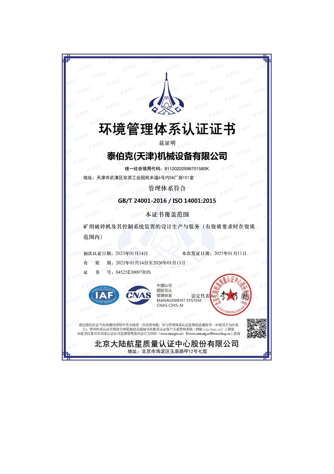 环境管理体系证书